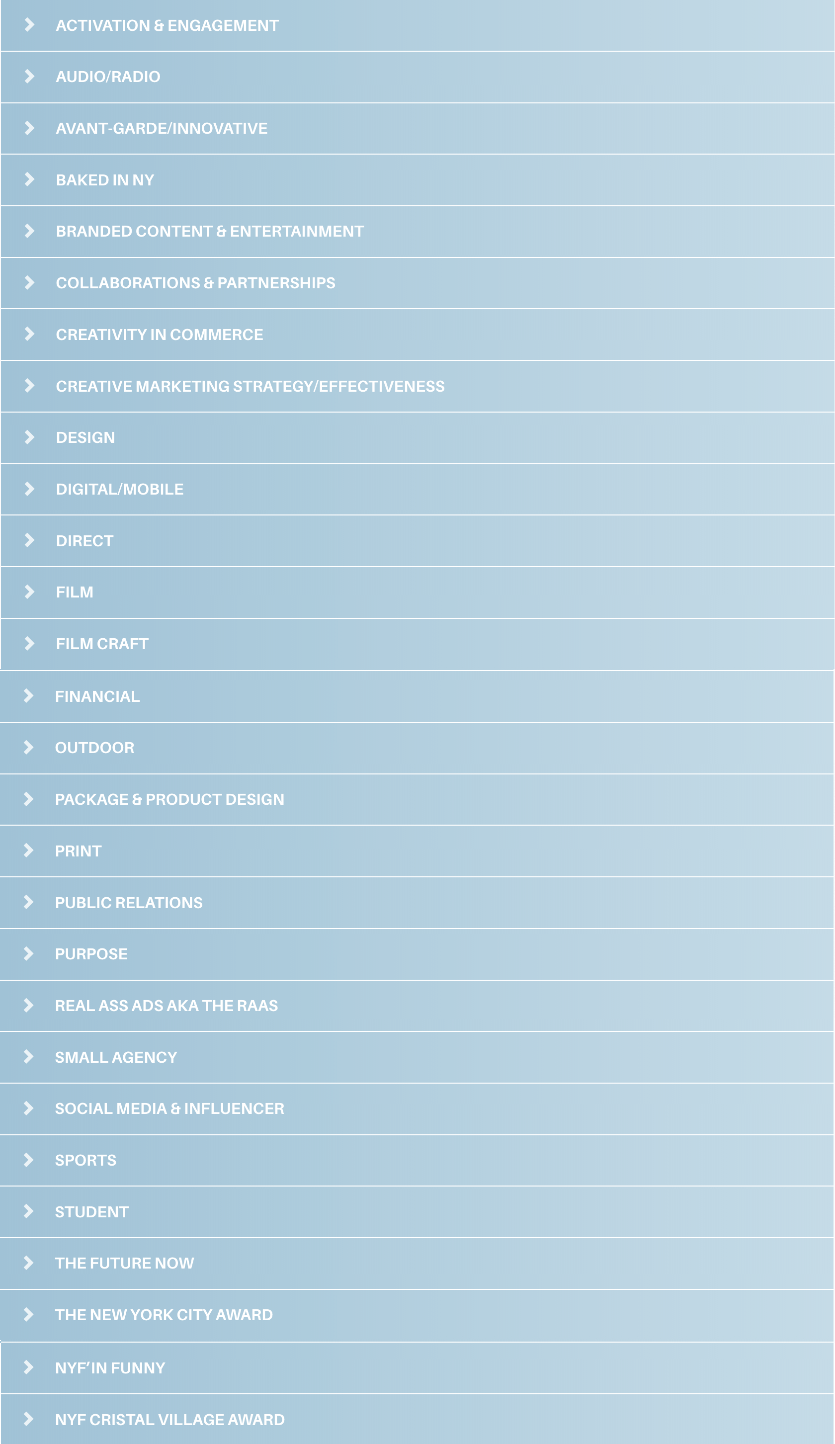 New York Festivals gives the jury the right to move an entry to a different category should they determine the work does not belong in the category in which it was originally entered. By moving the ad, the jury will agree it will receive an award equal to or higher than the one it was originally scheduled to receive.