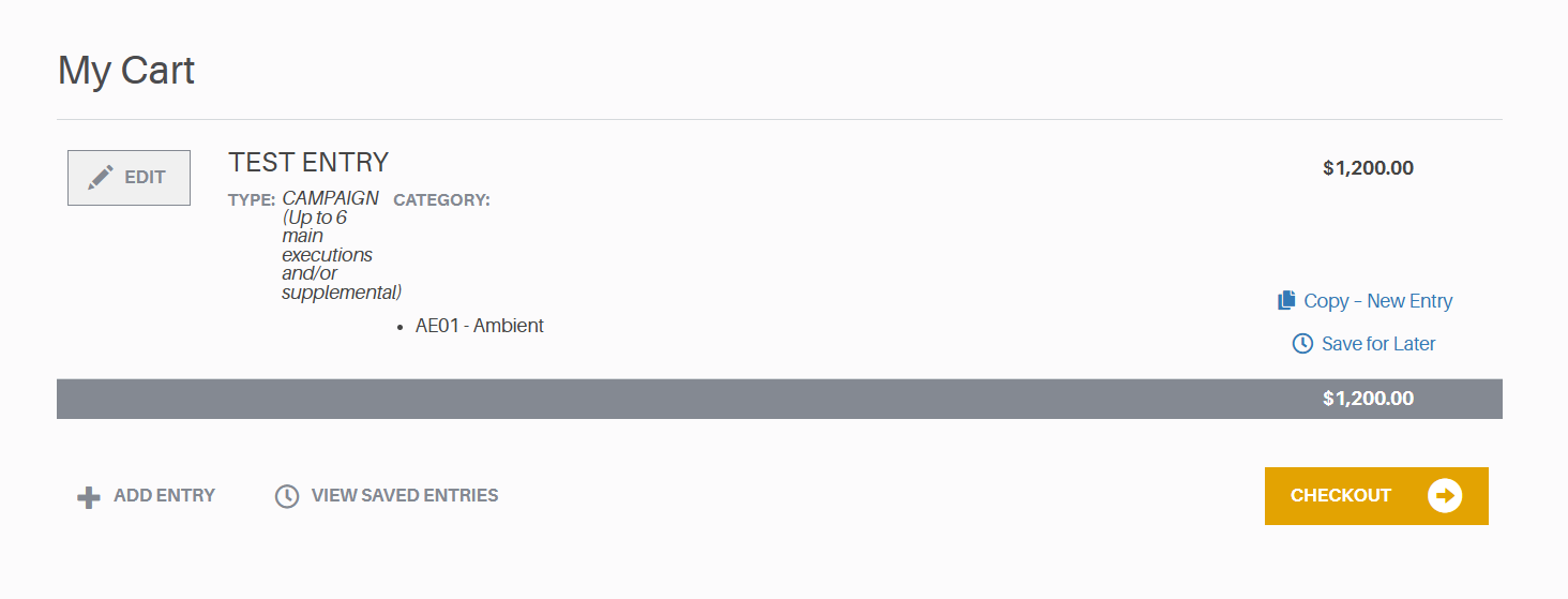 Your cart will display any completed entry drafts that have been added to it.